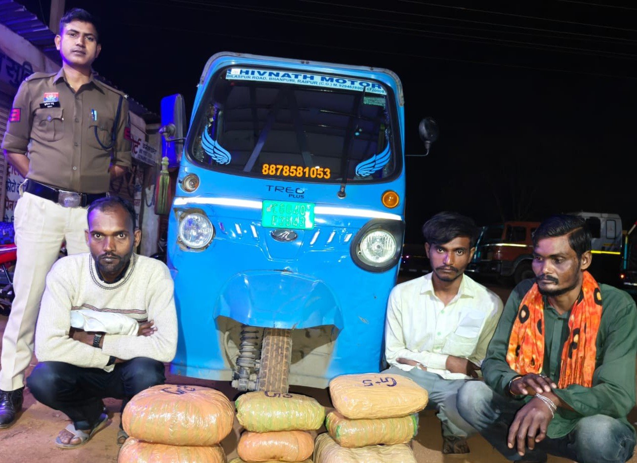 आरोपियों के कब्जे से एक महेंद्र कंपनी का इलेक्ट्रिक ऑटो, गांजा, मोबाइल फोन, ईयरबड और नकद राशि जब्त कर धारा 20(ख)(ii) एनडीपीएस एक्ट के तहत विधिवत कार्रवाई की गई। सभी आरोपियों को न्यायालय में पेश कर जेल भेज दिया गया है।