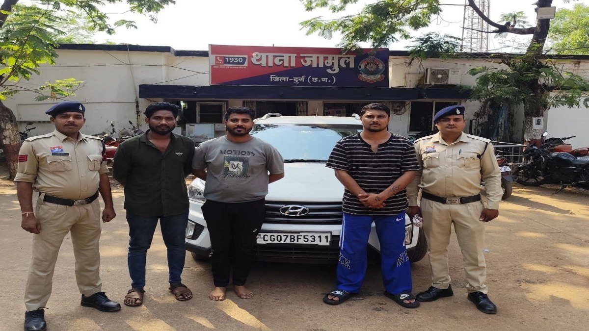 CG Prime News@भिलाई. Durg: 3 Youths Arrested for Online Betting on IPL Match आईपीएल (IPL) क्रिकेट मैच में ऑनलाइन सट्टा खेलते तीन आरोपियों को जामुल थाना पुलिस ने गिरफ्तार किया है। आरोपियों के कब्जे से तीन मोबाइल फोन, एक क्रेटा कार और एक स्कूटी जब्त की गई है। जामुल थाना पुलिस ने बताया कि आरोपियों से जब्त मोबाइल फोन में दो से तीन लाख का ऑनलाइन ट्रांजेक्शन मिला है। जिसकी जांच की जा रही है।
