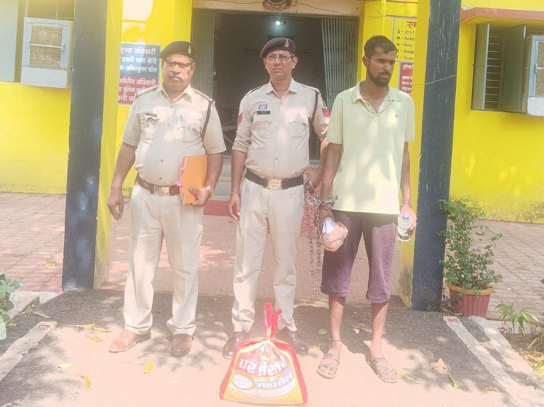 बोरी थाना पुलिस की कार्रवाई, डोमा मार्ग पर घेराबंदी कर पकड़ा तस्कर