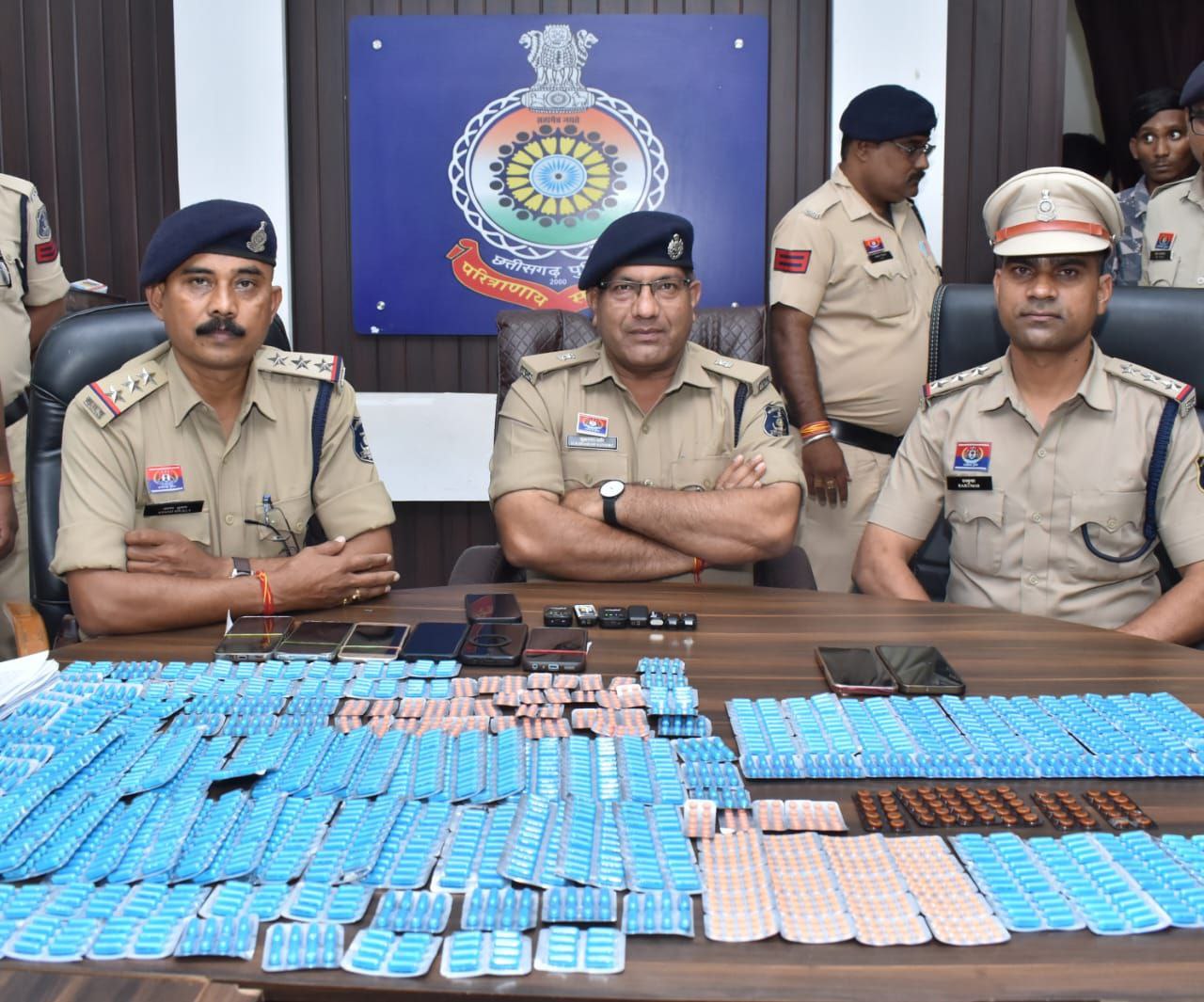 दुर्ग जिले में नशीली टेबलेट, कैप्सूल बेचने वाले 8 आरोपी गिरफ्तार, नशीली दवाओं को जखीरा बरामद