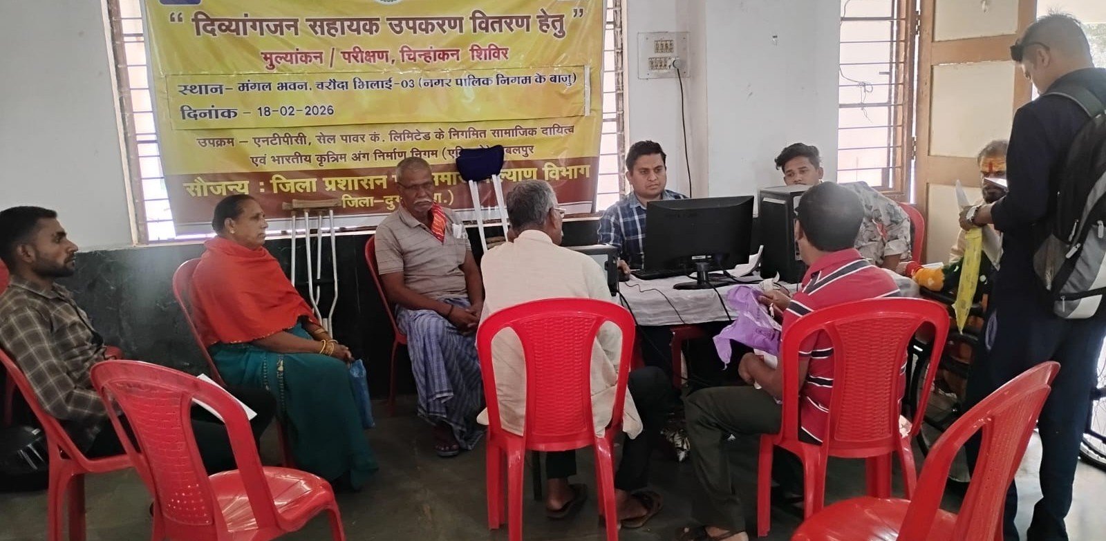 दुर्ग। एनटीपीसी-सेल कम्पनी लिमिटेड की सीएसआर योजना के तहत, भारतीय कृत्रिम अंग निर्माण निगम (भारत सरकार का उपक्रम) और समाज कल्याण विभाग के संयुक्त तत्वावधान में मंगल भवन, भिलाई-चरोदा में दिव्यांगजनों के लिए सहायक उपकरण वितरण हेतु चिन्हांकन, मूल्यांकन और परीक्षण शिविर आयोजित किया गया।