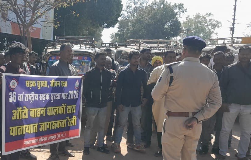 जशपुर। सड़क दुर्घटनाओं में कमी लाने और आम नागरिकों को यातायात नियमों के प्रति जागरूक करने के उद्देश्य से जशपुर पुलिस द्वारा ऑटो रैली का आयोजन किया गया। यह रैली राष्ट्रीय सड़क सुरक्षा माह (01 जनवरी से 31 जनवरी 2026) के अंतर्गत आयोजित की गई, जिसमें ऑटो चालकों के माध्यम से आम लोगों तक यातायात नियमों का संदेश पहुंचाया गया।