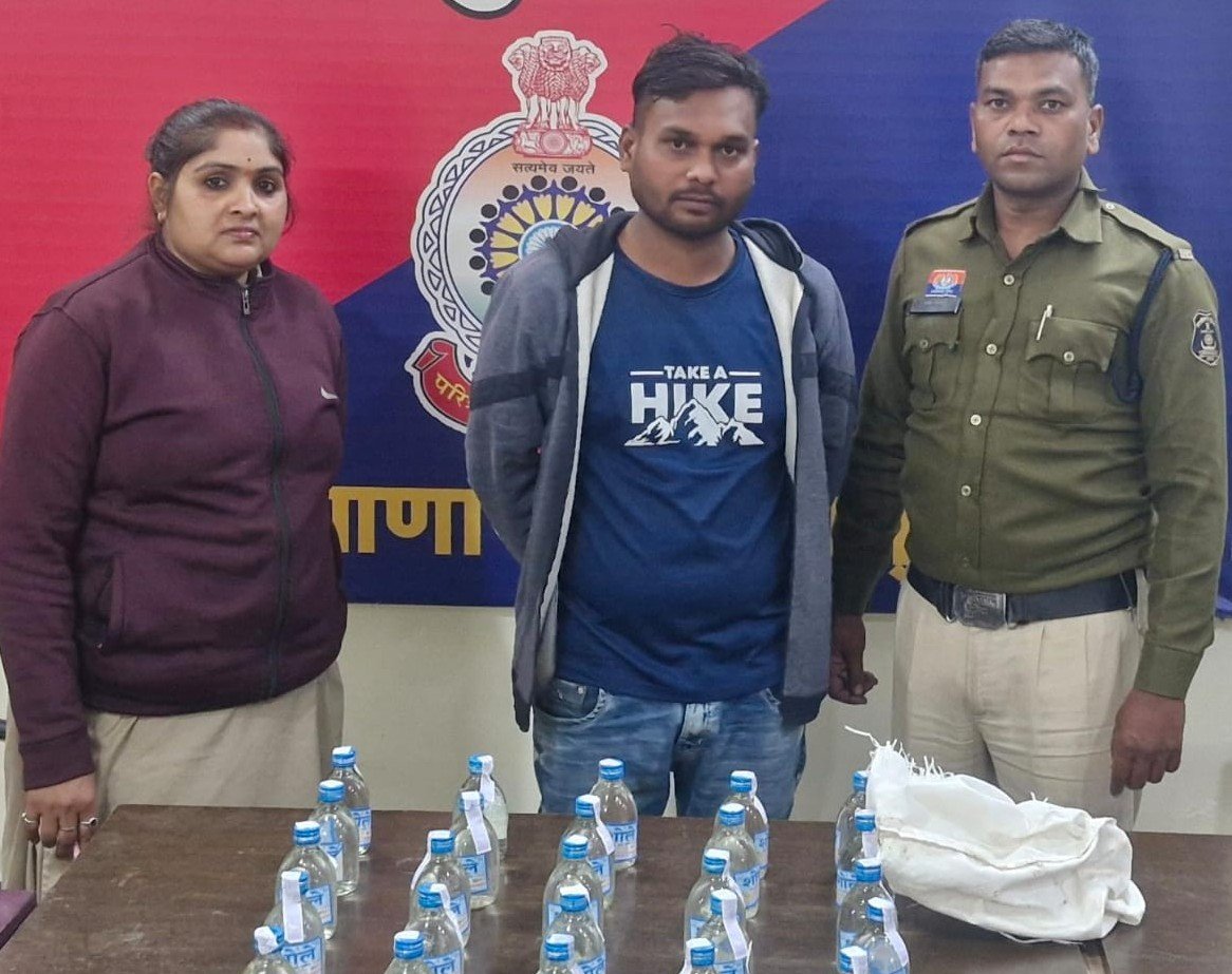 पुलिस टीम ने मौके पर आरोपी महावीर उर्फ पिन्टू सोनकर को अवैध रूप से शराब बिक्री करते हुए पकड़ा। तलाशी के दौरान उसके कब्जे से कुल 30 पौवा देशी मदिरा प्लेन शराब बरामद की गई, जिसकी अनुमानित कीमत ₹2,400 बताई गई है।