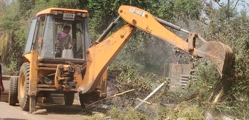 दुर्ग के समोदा गांव में अवैध अतिक्रमण हटाने के लिए प्रशासन द्वारा बुलडोजर कार्रवाई