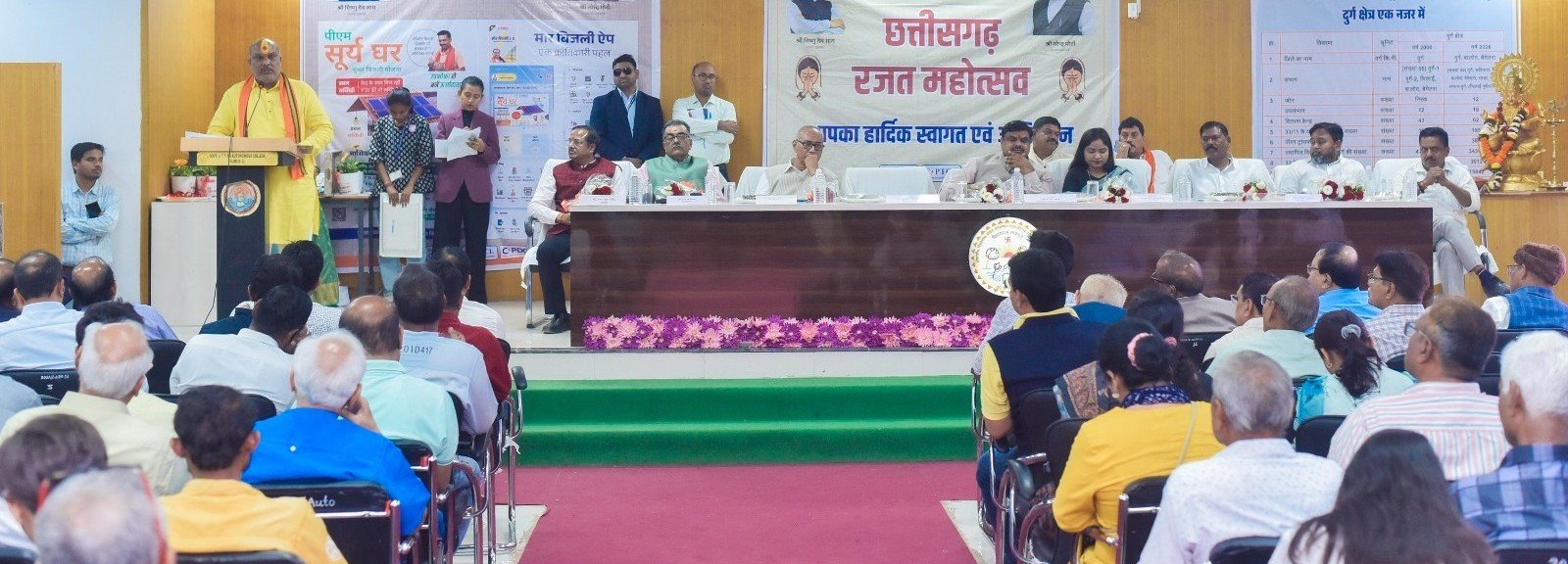 दुर्ग। छत्तीसगढ़ राज्य स्थापना के 25 वर्ष पूर्ण होने के अवसर पर आयोजित छत्तीसगढ़ रजत महोत्सव के अंतर्गत छत्तीसगढ़ स्टेट पॉवर डिस्ट्रीब्यूशन कंपनी लिमिटेड (सीएसपीडीसीएल), दुर्ग क्षेत्र द्वारा साइंस कॉलेज परिसर स्थित राधाकृष्ण सभागार में भव्य क्षेत्रीय समारोह का आयोजन किया गया।