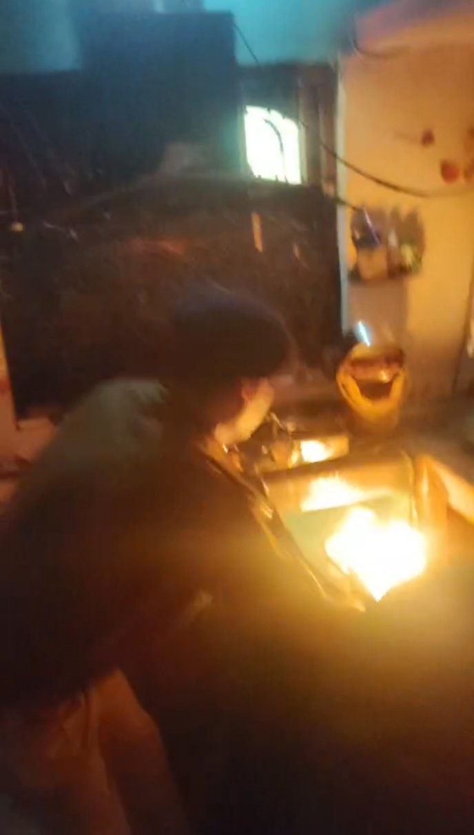 किचन के सामान जल रहे थे