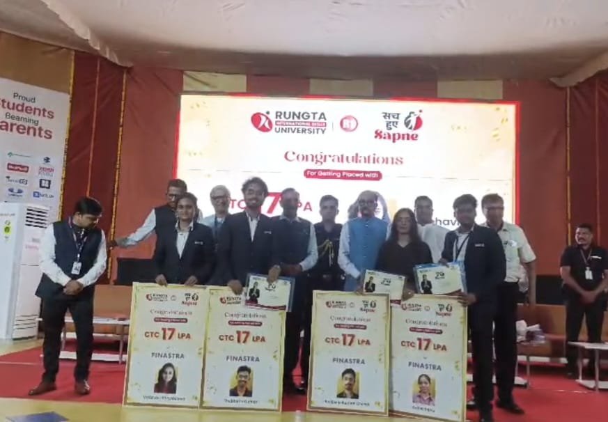CG Prime News@भिलाई. Rungta University bhilai open placement camp 2026 रूंगटा इंटरनेशनल यूनिवर्सिटी में आयोजित बहुप्रतीक्षित ओपन कैंपस प्लेसमेंट ड्राइव “प्लेसमेंटनामा” का सोमवार को सफल समापन हो गया। कई दिनों तक चले इस रोजगार मेले में हजारों युवाओं ने हिस्सा लिया और अब इसकी अगली कड़ी में मंगलवार को “सच हुए सपने” कार्यक्रम आयोजित किया गया। जिसमें चयनित विद्यार्थियों को कंपनियों के ऑफर लेटर प्रदान किए गए।