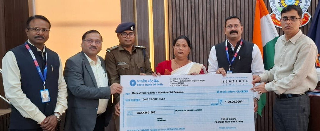 भारतीय स्टेट बैंक के अधिकारियों ने 1 करोड़ रुपये की जीवन बीमा सहायता का चेक उनके परिजनों को सौंपा। इस अवसर पर पुलिस महानिरीक्षक सरगुजा दीपक कुमार झा ने बैंक अधिकारियों को सहयोग हेतु धन्यवाद दिया।