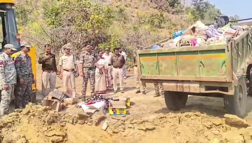 नायब तहसीलदार श्रीमती योगिता भेड़िया, थाना प्रभारी निरीक्षक श्री जितेन्द्र गुप्ता और आबकारी उप निरीक्षक पुरूषोत्तम साकार की उपस्थिति में जेसीबी से गड्ढा खोदकर शराब और बिसरा का नष्टिकरण किया गया।
