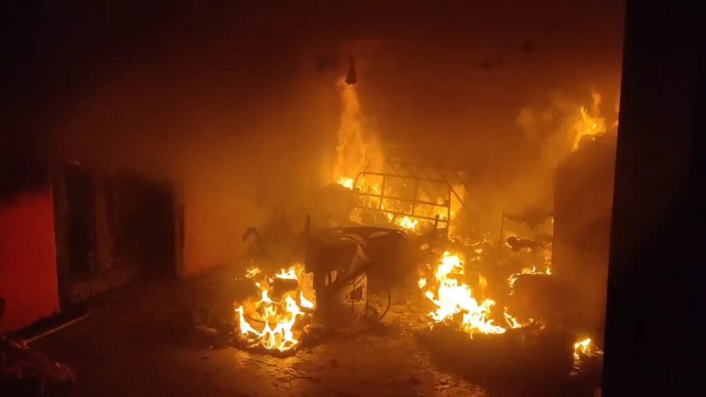 बिलासपुर। सूरजपुर के मानपुर गांव स्थित एक घर में गुरुवार की आधी रात चार्ज पर लगी इलेक्ट्रिक स्कूटी में अचानक जोरदार धमाके के साथ आग लग गई। आग ने पूरे कमरे को जद में ले लिया और देखते ही देखते स्कूटी समेत कमरे में रखा सारा सामान जलकर खाक हो गया। आग से लाखों रुपए का नुकसान हुआ है। इस दौरान परिवार के सदस्यों ने पीछे के दरवाजे से निकलकर अपनी जान बचाई। सूचना पर पहुंची दमकल की टीम ने मशक्कत के बाद आग पर काबू पाया।